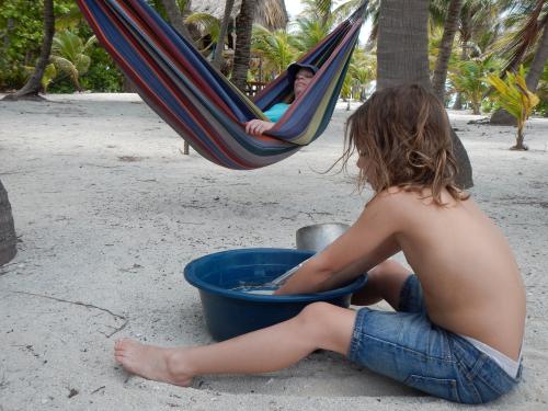 Zurück im Dorf spielten Paulina & Luzi mit den einheimischen Mädchen und konnten sich richtig mit ihnen verständigen: Belize ist englisch-sprachig!