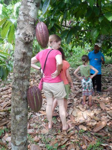 Jeder durfte das mal ausprobieren und am Ende konnten wir "unsere" Schokolade probieren, lecker! Danach ging es mit einem Bauern auf die Plantage: