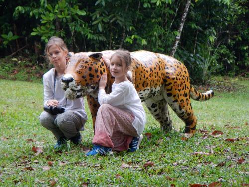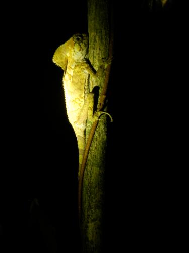 Am nächsten Tag hatten wir eine Nacht-Exkursion in den Urwald geplant, die wir fast nicht hätten antreten können: Luzi hatte Bauchweh vor Aufregung. Sie hat sich dann doch überwunden und es hat sich total gelohnt. Wir folgten unserem Guide, dem Bruder von Gregorio, der auch im Dschungel aufgewachsen ist bevor ihr Dorf zugunsten des Natur-Reservats umgesisdelt wurde. Das Zirpen der Zikaden war ohrenbetäubend, es flogen blinkende Glühwürmchen vorbei und Grillen, deren Augen leuchten, fast wie bei Star Wars! Wir entdeckten eine riesige Kröte, eine Tarantel,