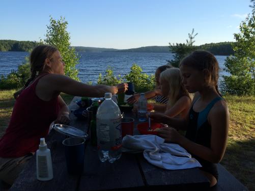 Beim Frühstück am Kioshkwiwok Lake