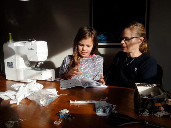 Dort wurde das „Studio“ sogleich eröffnet und Luzis und Paulinas Freundinnen Greta und Daniela machten begeistert mit beim Stofftiere- und Rock-Nähen.