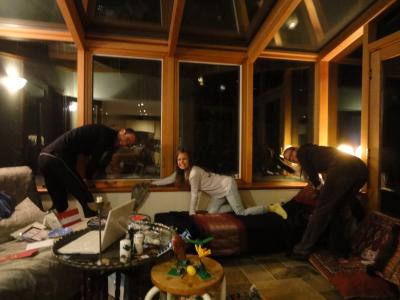 Silvester waren wir bei den Eltern von Klassenkameradinnen von Luzi und Paulina eingeladen. Vivien & Sarah feierten mit den Kindern der anderen Gäste im Basement eine Kinderparty während die Eltern oben ihren „adult evening“ hatten. Die Gäste waren typisch kanadisch aus allen Teilen der Welt zusammengewürfelt, von Usbekistan und Russland im Osten über Frankreich, Luxemburg und Deutschland bis Mexiko und es waren sogar auch Kanadier dabei (sie Franko-, er Anglo-). Es war ein lustiger und vor allem leckerer Abend ganz ohne Musik & Tanz und Feuerwerk. Begonnen hatten wir den Abend aber zu hause um 17 Uhr 45 mit NDR 2 und den letzten 15 Minuten des Countdown auf das Hamburger Neujahr, brettlauter Musik, der Lichtorgel aus Marktstr.8 und familiärem Gezappel (Sandy, wir haben Dich sehr vermisst...)