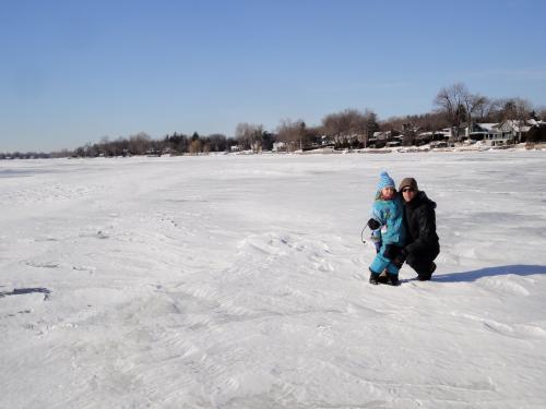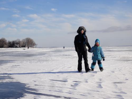 Dann waren wir auch das erste mal auf dem St.Laurent, der zugefroren einen ganz neuen Spielplatz für uns bietet: