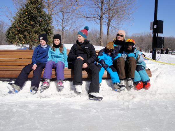 Zum guten Schluss noch ein Bericht vom heutigen Tag: wir brachten Paulina zu einer geburtstags-Einladung ins Science-Museum in die City. Danach fuhr der Rest der Familie auf den Mont Royal um dort Schlittschuh zu laufen. Wieder sehr kanadisch: es gibt ein Gebäude, in dem man sowohl Schlittschuhe als auch Langlauf-Skier ausleihen kann und auch sehr praktische Umkleiden sind. In den Bänken sind Fächer für die Straßenschuhe, unten offen damit der Schnee abfallen kann. Zwar sind die Fächer verschließbar aber genutzt wird das wohl nur von Leuten, die ihre Schlittschuhe dort über Nacht lagern. Über Gummimatten geht es dann auf die Eisfläche, es spielt dezente klassische Musik und man blickt hinüber auf den Schlittenberg, auf dem man auf abgetrennten Bahnen Wettrennen fahren kann. Mit diesen winterlichen Impressionen verabschiede ich mich für heute, zurück ins Studio...