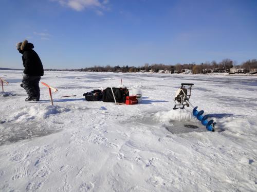 3 Minuten zu Fuß haben wir jetzt ein riesiges neues Areal für Spaziergänge. Wir sprachen mit zwei Männern, die zum Eisangeln Löcher ins Eis gebohrt und diverse Angeln aufgestellt hatten. Demnächst können sie dann wohl mit dem Auto zu ihren Löchern fahren, momentan ist das Eis erst etwa 12 cm dick.
